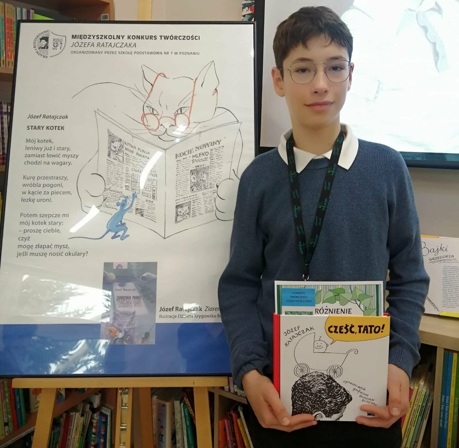 Wielkie brawa dla Franciszka Sobczaka z klasy 6b, który zdobył wyróżnienie w VIII Międzyszkolnym Konkursie Twórczości Józefa Ratajczaka. Franek zachwycił jury swoją interpretacją wiersza ”
