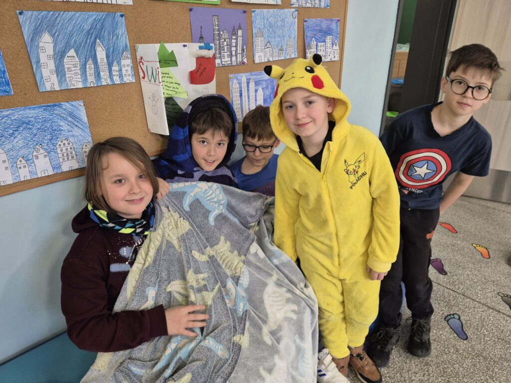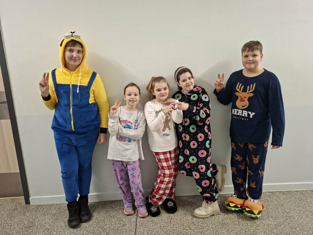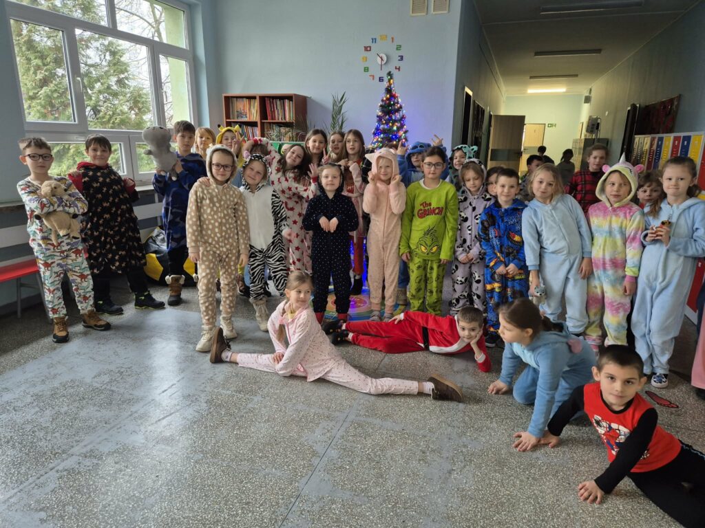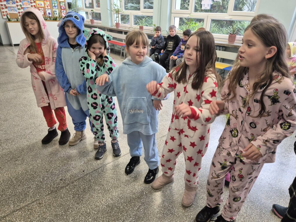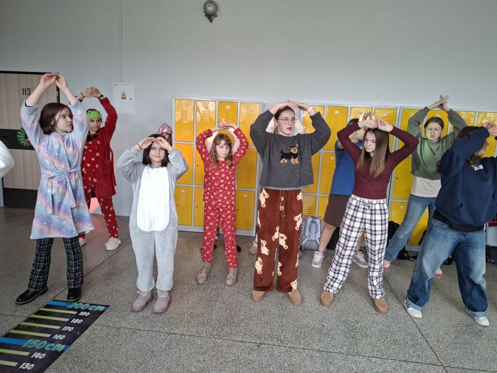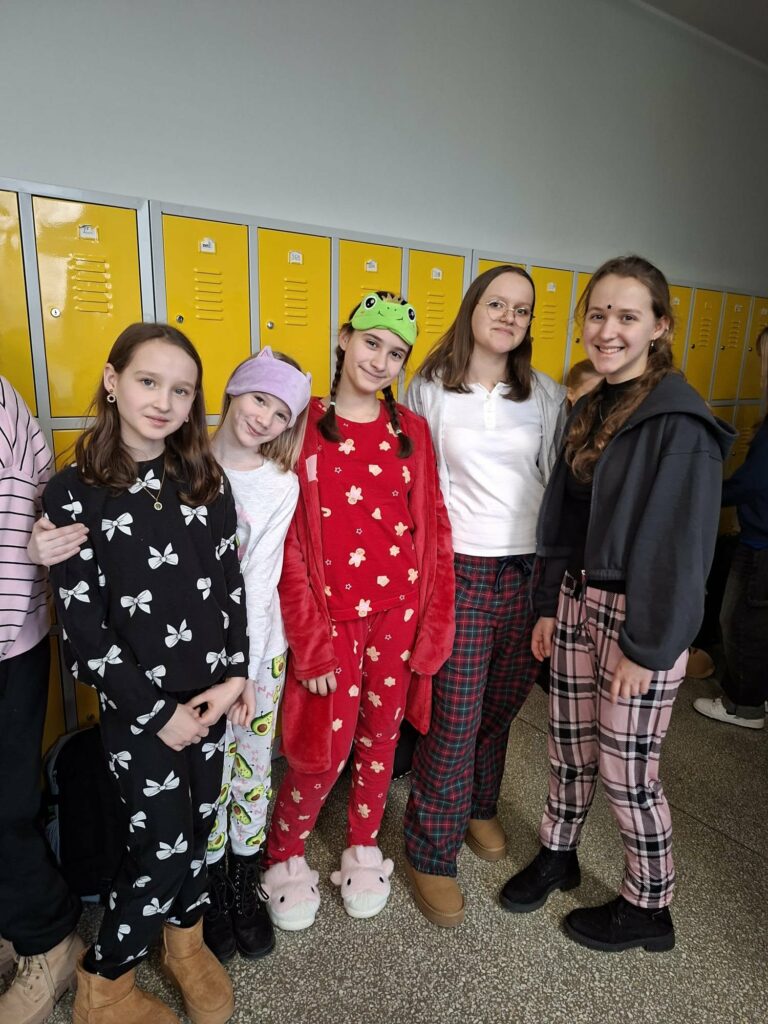 Z inicjatywy Samorządu Uczniowskiego zorganizowany został „Dzień Piżamy”. Był to czas, w którym solidaryzujemy się z dziećmi ciężko chorymi, dla których piżama to nieodłączna część każdego dnia. Przy okazji uczymy się empatii, a także zwracamy uwagę na zdrowie i dbanie o nie. Uczniom bardzo spodobał się taki nietypowy dzień w naszej szkole. Na szkolnych korytarzach można było spotkać uczniów w kombinezonach piżamowych przebranych za różne postacie. Niektórzy uczniowie mieli nawet ulubione poduszki i przytulanki.
