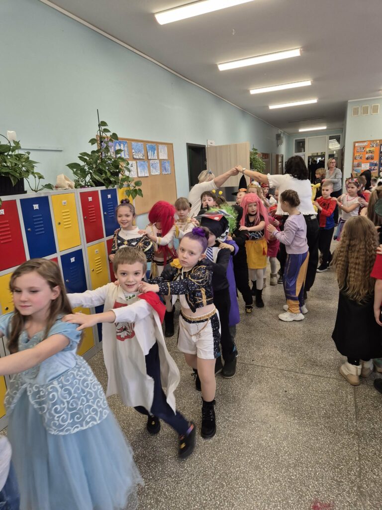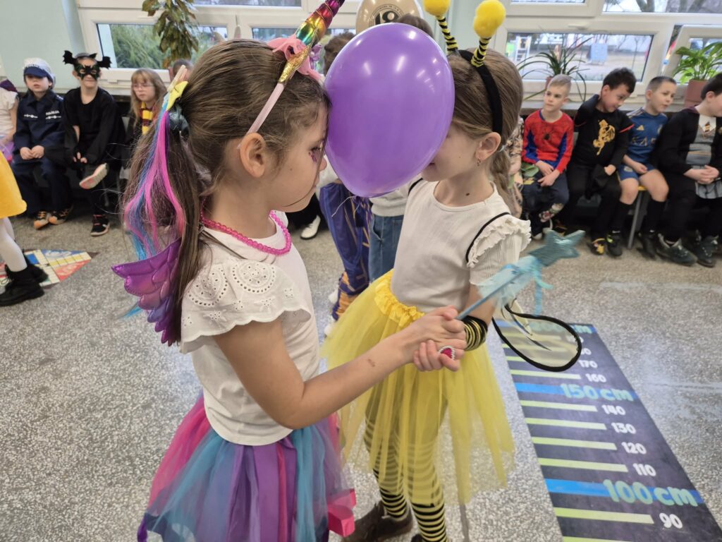 W naszej szkole odbył się radosny Dzień Przebierańca połączony z zabawą karnawałową dla klas 1–3 oraz dyskoteką dla klas 4–8. Najmłodsi uczniowie zachwycili kolorowymi i pomysłowymi strojami – wśród nich pojawiły się księżniczki, superbohaterowie, zwierzątka i postacie z bajek. Podczas zabawy nie zabrakło tańców, konkursów i wspólnych gier przy wesołej muzyce. Starsze klasy bawiły się na szkolnej dyskotece, gdzie parkiet szybko zapełnił się tańczącymi uczniami. Była świetna muzyka, dużo energii i wspaniała atmosfera. To był dzień pełen radości i dobrej zabawy!