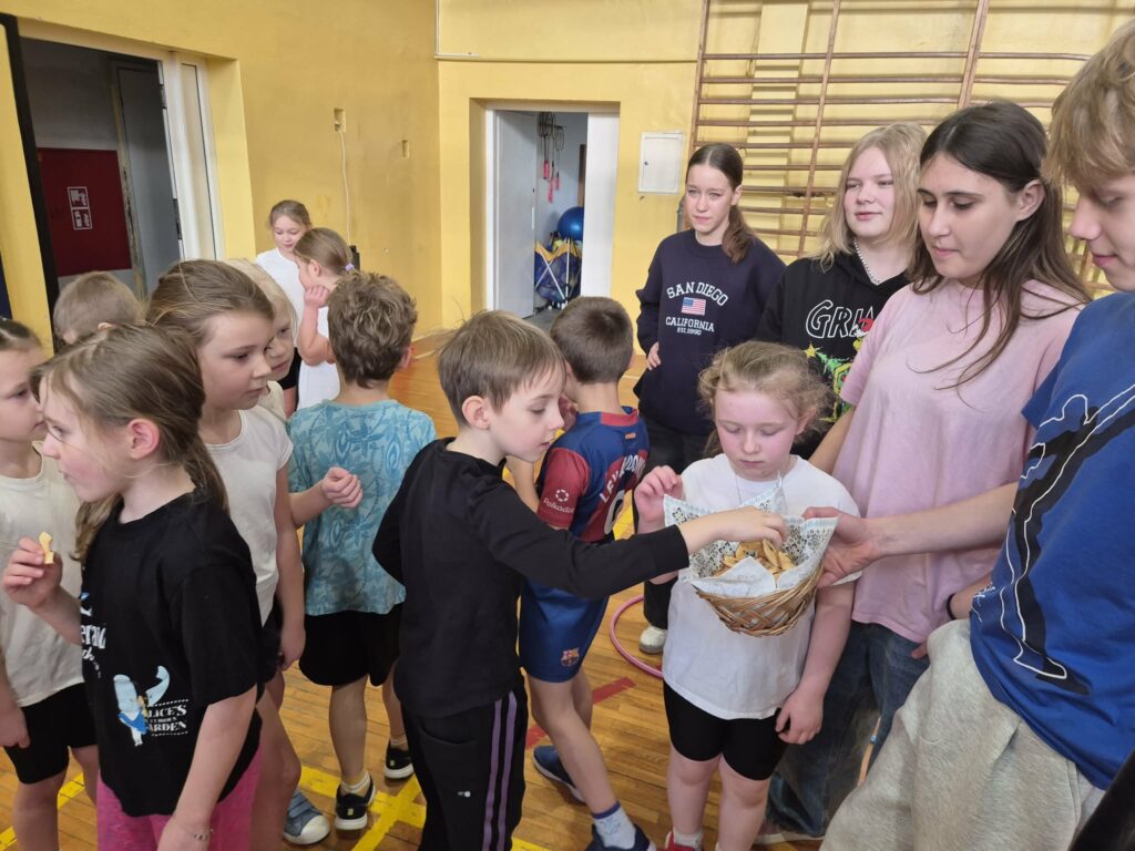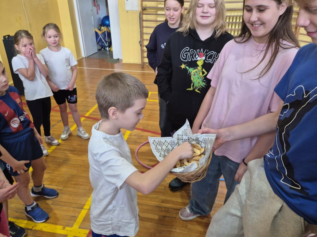W ramach przedmiotu Edukacja Zdrowotna uczniowie klasy 7b przygotowali dla swoich młodszych kolegów z klasy 1a zajęcia sportowe pod hasłem „RUCH TO PROSTA DROGA DO ZDROWIA”. Była to duża porcja ruchu i zdrowe przekąski. Dziękujemy i czekamy na więcej 🙂