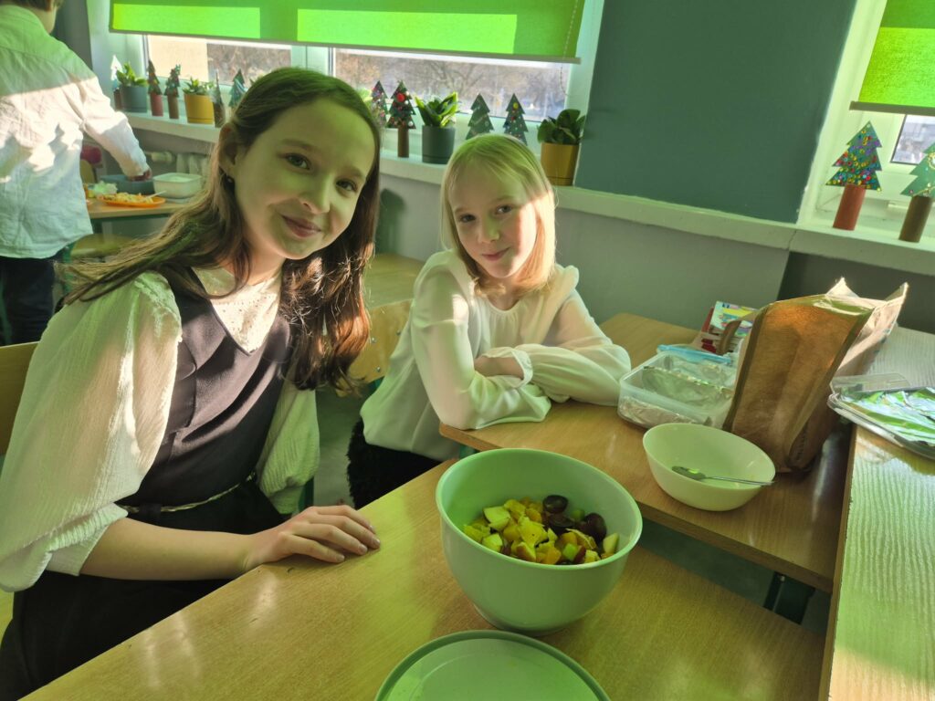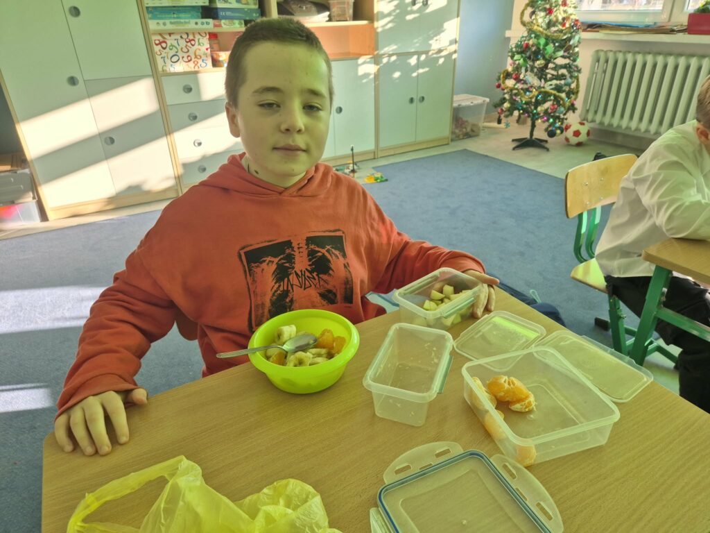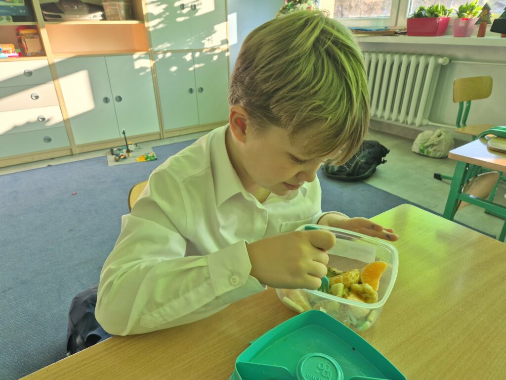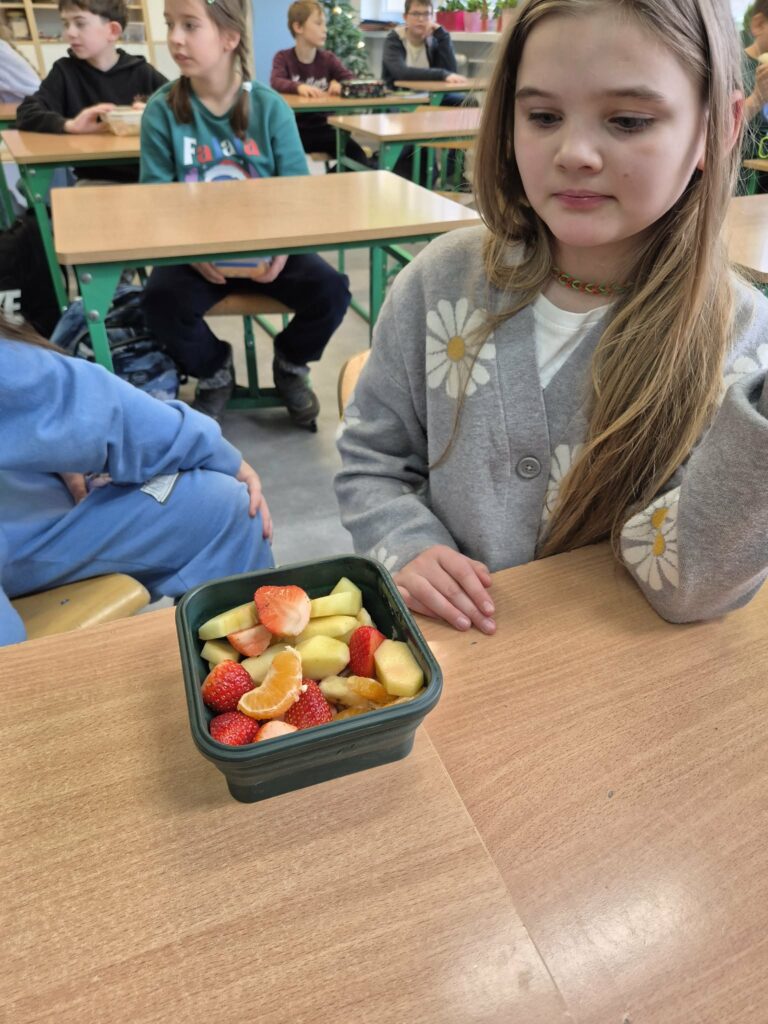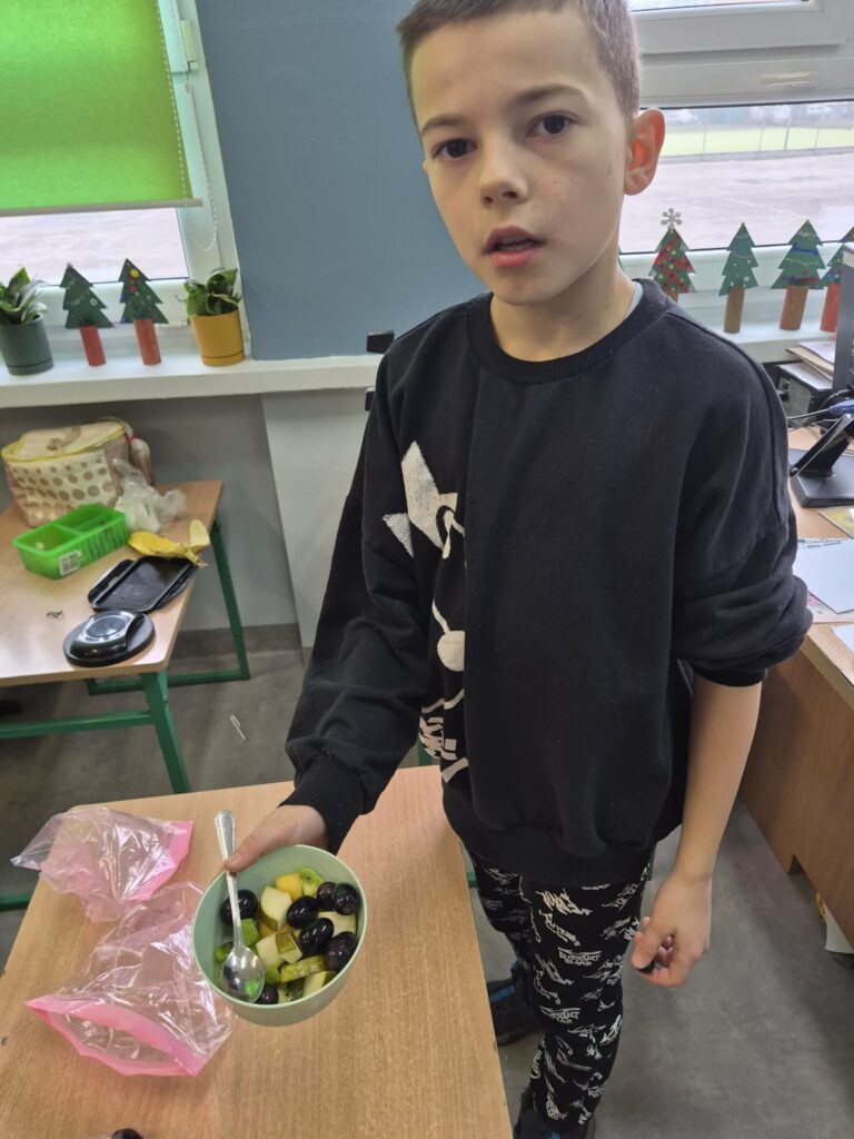 Podczas zajęć z edukacji zdrowotnej uczniowie klas 4 poznali zasady zdrowego odżywiania na podstawie „Talerza Żywienia”. Wcześniej obliczali swoje BMI, ucząc się, jak dbać o zdrowie i prawidłową masę ciała. Zajęcia zakończyły się wspólnym przygotowaniem sałatki owocowej, które było praktycznym podsumowaniem zdobytej wiedzy.