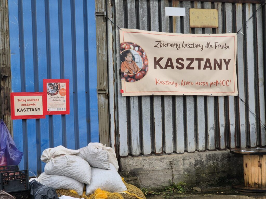 Fundacja Akuratna rozpoczęła tegoroczną akcję zbierania kasztanów na rzecz chorego 8-letniego Franka Mruga z Poznania. Dzięki kasztanom możemy wesprzeć jego walkę o zdrowie. Zasada akcji jest prosta – Wy zbieraliście kasztany i przynosiliście je do wyznaczonego miejsca, a Fundacja Akuratna otrzymuje za nie środki, które w 100% przeznaczone są  na rehabilitację i leczenie chłopca. Dziękujemy za Wasz udział !