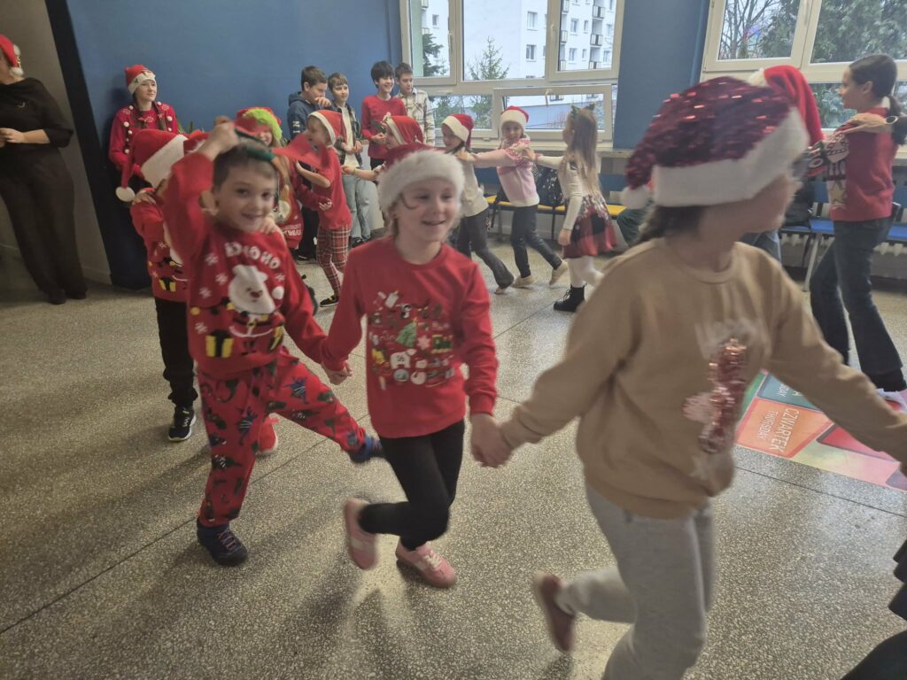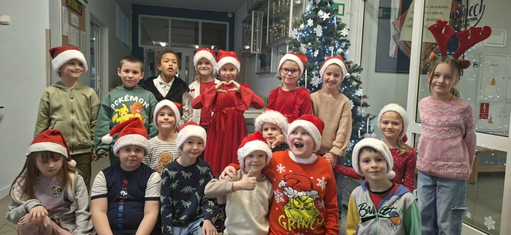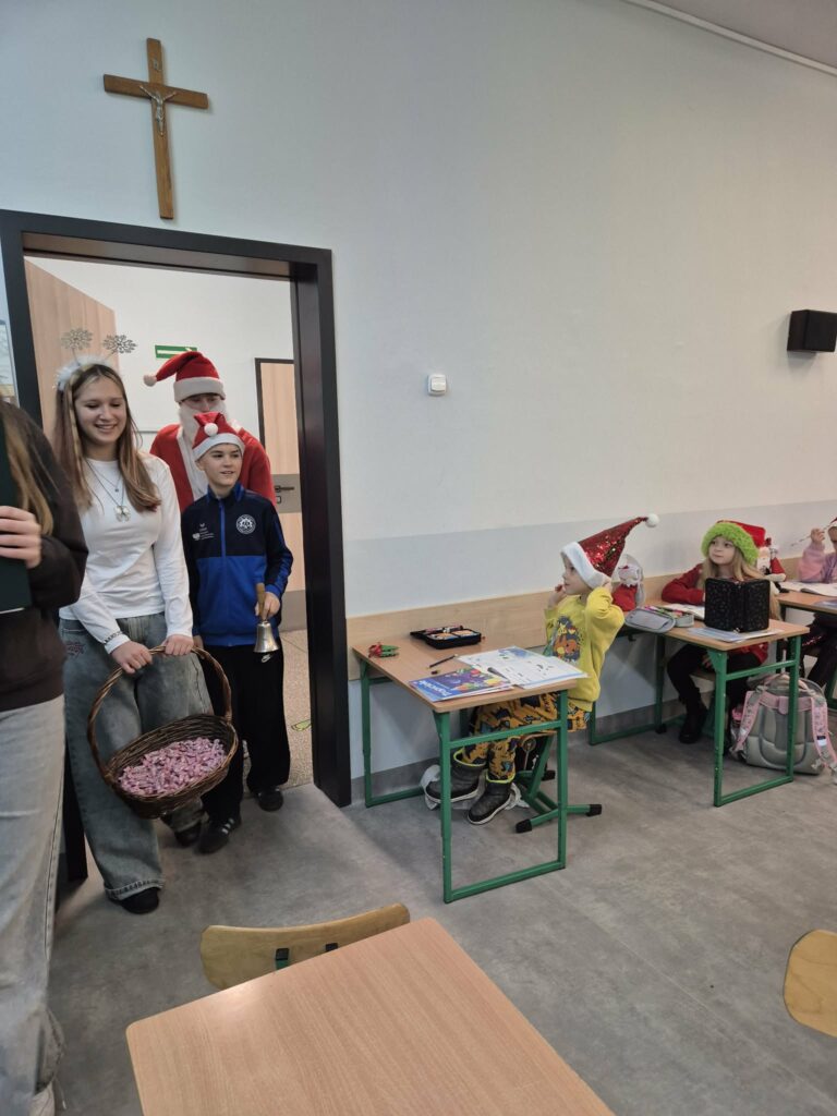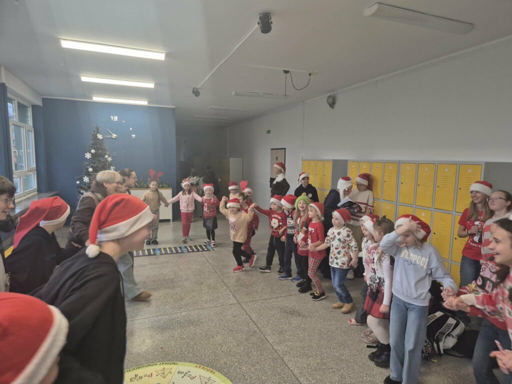 Zgodnie z tradycją, naszą szkołę ogarnęła prawdziwa, świąteczna magia! Tegoroczne Mikołajki były pełne radości, muzyki i niezapomnianych wrażeń. Centralnym punktem dnia było uroczyste zapalenie szkolnej choinki na holu . Światełka wprowadziły wszystkich w świąteczny nastrój, a wspólne śpiewanie i tańce uświetniły ten moment. Najbardziej wyczekiwanym momentem była oczywiście wizyta Świętego Mikołaja! W towarzystwie swoich pomocników odwiedził każdą klasę, wręczając uczniom słodycze i życząc Wesołych Świąt. Dziękujemy Mikołajowi za ten piękny gest i zapewniamy, że w naszej szkole są tylko grzeczne dzieci! Cieszymy się, że dzięki zaangażowaniu Samorządu Uczniowskiego mogliśmy wspólnie celebrować ten wyjątkowy dzień!
