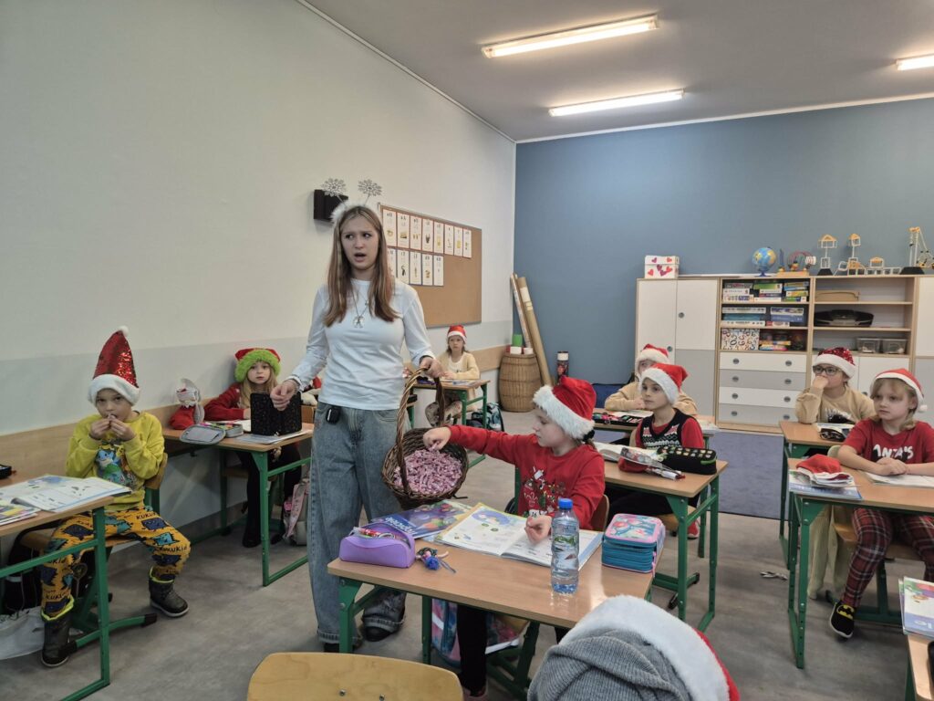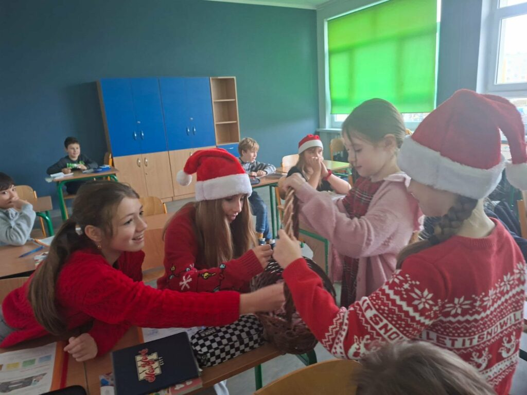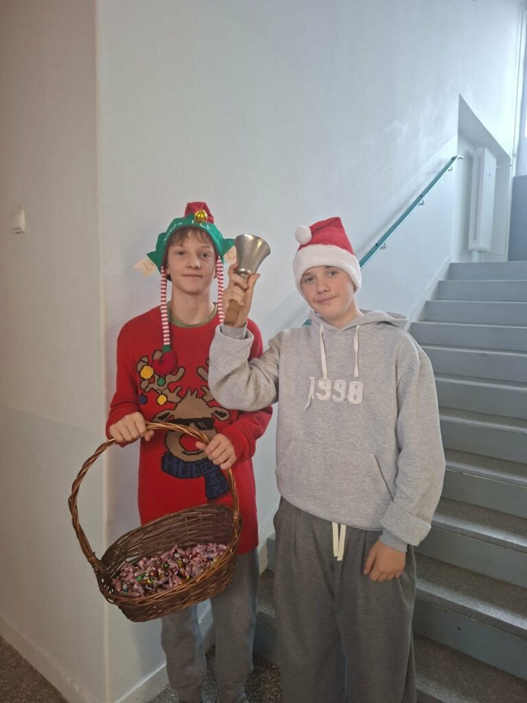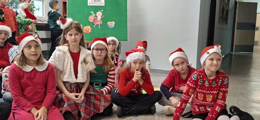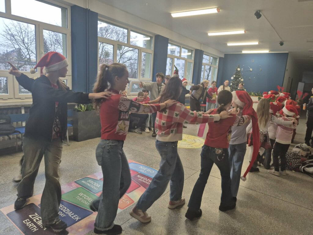 Zgodnie z tradycją, naszą szkołę ogarnęła prawdziwa, świąteczna magia! Tegoroczne Mikołajki były pełne radości, muzyki i niezapomnianych wrażeń. Centralnym punktem dnia było uroczyste zapalenie szkolnej choinki na holu . Światełka wprowadziły wszystkich w świąteczny nastrój, a wspólne śpiewanie i tańce uświetniły ten moment. Najbardziej wyczekiwanym momentem była oczywiście wizyta Świętego Mikołaja! W towarzystwie swoich pomocników odwiedził każdą klasę, wręczając uczniom słodycze i życząc Wesołych Świąt. Dziękujemy Mikołajowi za ten piękny gest i zapewniamy, że w naszej szkole są tylko grzeczne dzieci! Cieszymy się, że dzięki zaangażowaniu Samorządu Uczniowskiego mogliśmy wspólnie celebrować ten wyjątkowy dzień!