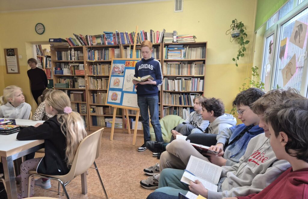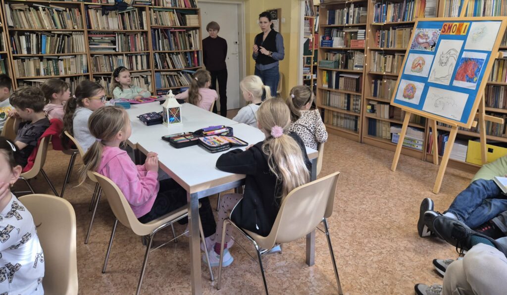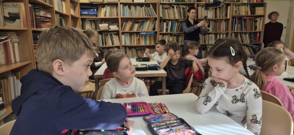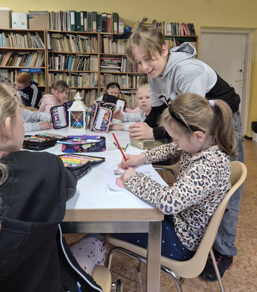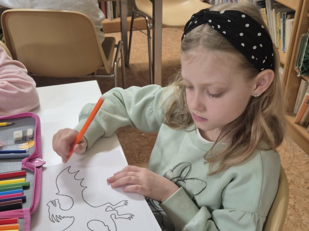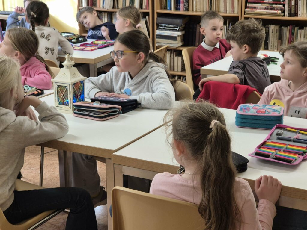 W naszej magicznej bibliotece odbyła się w czwartek niezwykła lekcja. Dzieci z klasy 1a uczestniczyły w zajęciach o smokach. Starsi uczniowie z klasy 6B oraz 7a czytali fragmenty o smokach z takich książek jak : ” Eragon” „Ziemiomorze”, „Harry Potter” czy „Hobbit”. Nastepnie dzieci wykonywały prace plastyczne na podstawie wysłuchanych wcześniej opisów.