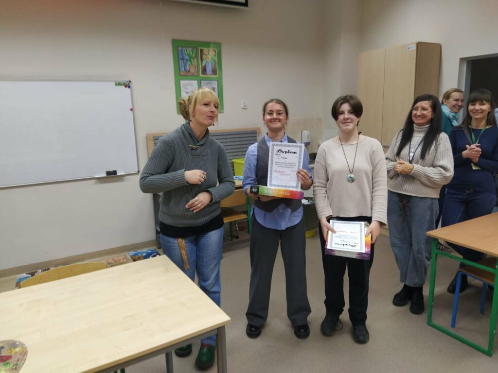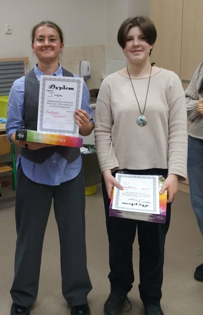 Uczennice naszej szkoły – Lena Sulżycka z kl. 7c i Anastasia Tushikova z kl. 8b wzięły udział w międzyszkolnym konkursie plastycznym „Jesienna kompozycja” organizowanym przez SP nr 20 w Poznaniu. W ciągu godziny wykonały pracę malarską pod dodatkowym tytułem „Jesień w lesie grzyby niesie”. Dziewczyny spisały się na medal: obie zajęły I miejsce!!! Gratulujemy!