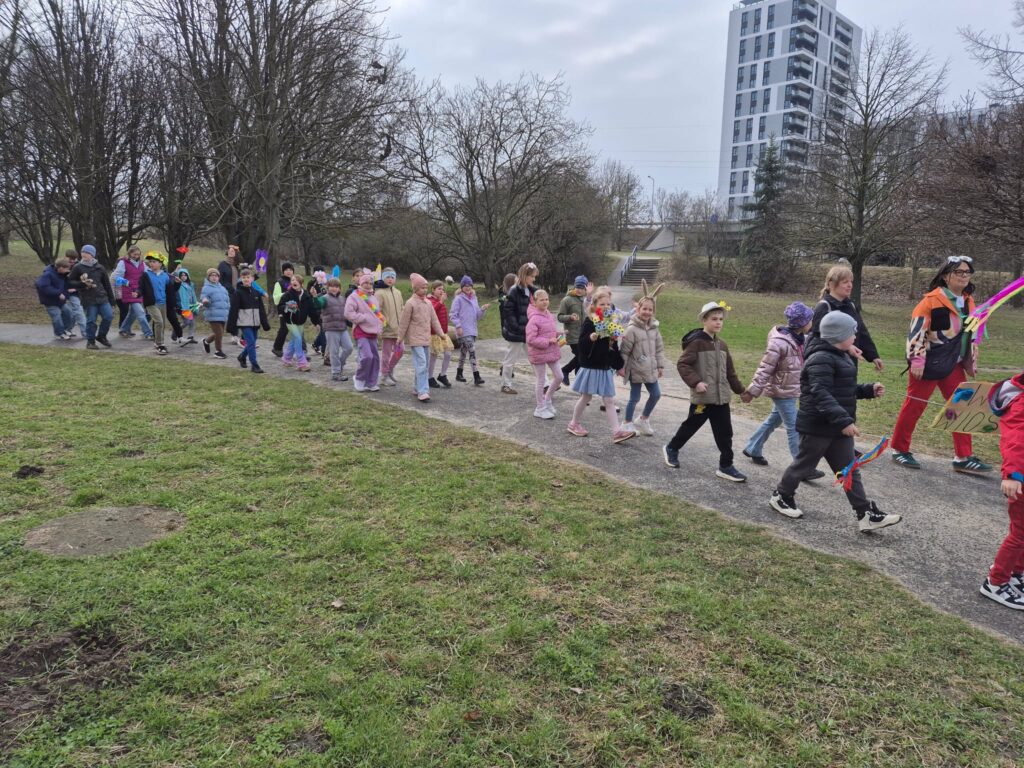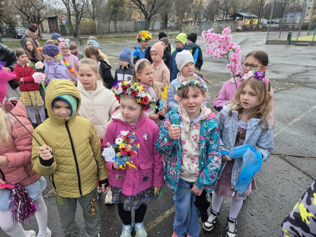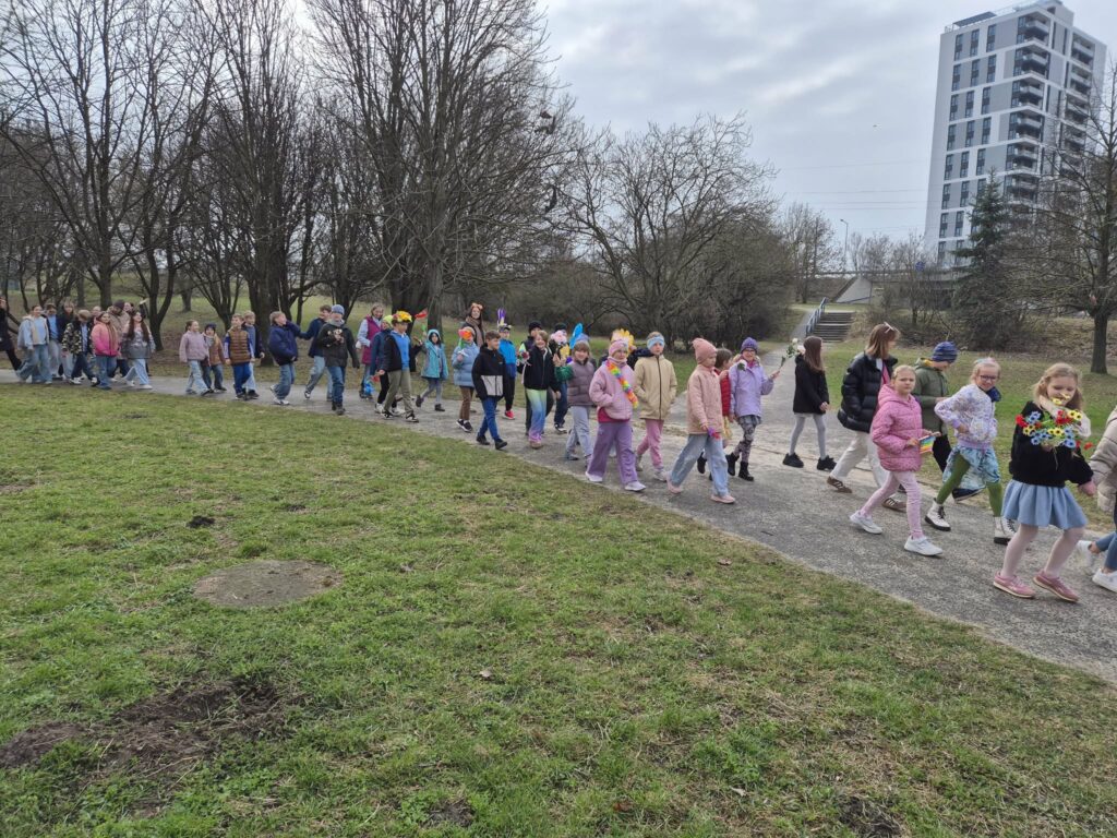 W naszej szkole zrobiło się wyjątkowo kolorowo i wesoło! Oficjalnie pożegnaliśmy zimę i z wielkim entuzjazmem przywitaliśmy najpiękniejszą porę roku – wiosnę. Z tej okazji uczniowie wraz z nauczycielami wzięli udział w kolorowym spacerze po naszym osiedlu. Wyposażeni w uśmiechy, wiosenne symbole i barwne stroje, szukaliśmy pierwszych oznak budzącej się przyrody. Mamy nadzieję, że energia, którą przynieśliśmy do szkoły, zostanie z nami na długo! Dziękujemy wszystkim za zaangażowanie i kreatywność w przygotowaniu tego wyjątkowego dnia.